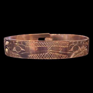 decades. Val currently works from her home on Vancouver Island implementing both traditional and original concepts into her Native art. al works in silver, gold and copper.