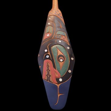 Most of Dicks carvings comprise of larger pieces including totem poles, bowls, paddles, plaques and larger masks.