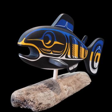 watched and learned from his father Ernie Henderson, and then began carving in red and yellow cedar. Greg is the grandson of the late Sam Henderson and the late May Henderson (granddaughter of the late